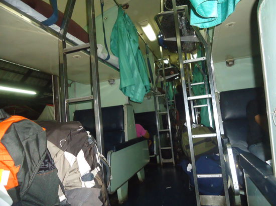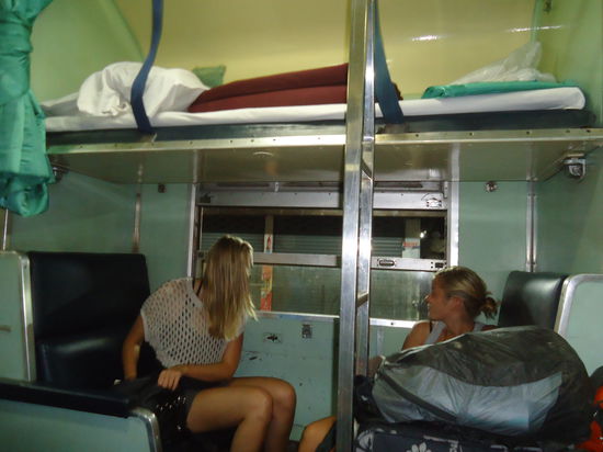 Nachdem wir unser Waggon und unsere Schlafplätze gefunden hatten, wussten wir gleich, dass es wohl eine unruhige Nacht werden wird. Es hatte ca. 32 ° Lufttemperatur im Zug, die Fenster waren alle geöffnet und Ventilatoren hingen an der Decke die auf Vollgas liefen. Wir hatten 3 Schlafplätze oben gebucht, inklusive dem Fähreticket nach Koh Samui kostete ein Ticket 33 €. Die Zugstrecke ist um die 600 km lang und dauerte 12,5 Stunden. Anfangs schwitzte man einfach nur schon vom daliegen, gegen später wurde es frischer allerdings konnten wir alle nicht wirklich schlafen. Es wurde oftmals ziemlich laut wenn der Zug durch einen anderen Bahnhof fuhr, er wackelte ziemlich stark und oft stank es auch nach verschiedenstem Zeug. Denn es liefen immer mal wieder ein paar Thais durch die Waggons und verkauften Frühlingsrollen, Reisgerichte oder frittierte Hähnchen - und danach roch es dann auch immer noch eine Weile. Auch morgens gab es dieselben Essensangebote, wir haben darauf allerdings verzichtet...