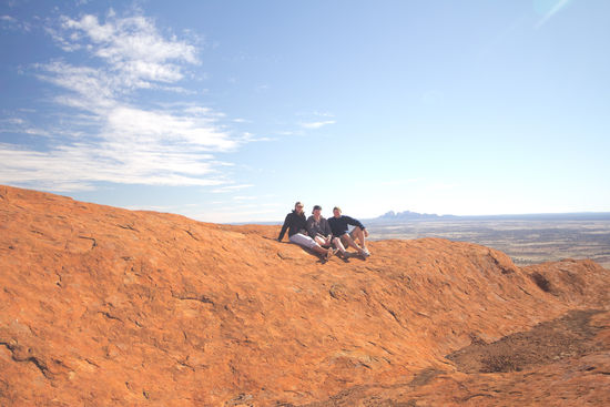 Für die, die noch nicht so viel über den Uluru gehört haben, erzähl ich euch kurz was es darüber zu wissen gibt. Der Felsen gehört den Aborigines wurde aber von der australischen Regierung 1985 gepachtet für die nächsten 99 Jahre. Für die Aborigines ist der Felsen heilig und sie möchten nicht dass er bestiegen wird. Sie betrauern und beschuldigen sich selbst wenn jemand bei dem Aufstieg stirbt oder sich verletzt. Während dieser Trauerzeit der Aborigines bleibt der Aufstieg geschlossen. Der Aufstieg ist an sich zu 70 % des Jahres aufgrund von Wind und Hitze geschlossen. Sollte die Zahl der Menschen die den Felsen hochklettern unter 20 % im Jahr fallen, wird der Aufstieg für immer geschlossen bleiben. Dieser Sandsteinmonolit ist 3,6 km lang, 2,4 km breit und ist 866 Meter üNN. Jährlich kommen bis zu 500.000 Touristen um den Ayers Rock zu sehen. Wir haben uns alle entschlossen dass wir ihn beklettern wollen.