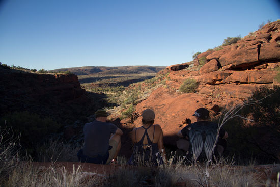 Wir sind dann wieder zurück zum Auto gelaufen, in dem Moment kam auch Holger zurück. Er sprach mit seiner befreundeten Werkstatt und die meinten dass es in Ordnung wäre wenn wir vorsichtig und langsam zurück fahren würden. Auf wieder normal geteerter Straße werden wir keine Probleme haben. Allerdings mussten wir nun unseren Plan ein wenig ändern, da wir vor Alice Springs noch durch die West MacDonnell Ranges fahren wollten. Und so mussten wir eben erst nach Alice und machten danach die Ranges. Aber zuerst liefen wir noch den anderen Walk den es dort gibt, und dieser war fast noch unbeschreiblicher - an einem Aussichtspunkt bekommt man eine Sicht in ein Tal das ausschaut wie eine fast vergessene oder versteckte Welt! Palm Valley gehört bei mir jetzt schon unter meine Top 5 OZ Liste (..Änderungen vorbehalten...)!