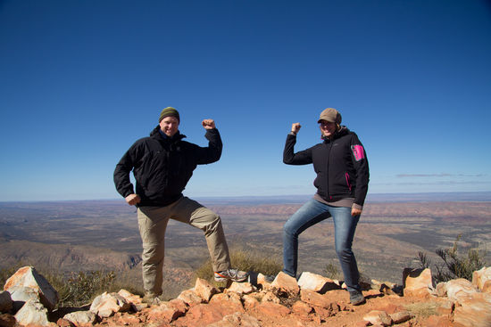 Die Wanderung war wirklich schön, man bekam ein schönen Blick über die Ranges, nur ging es fast die komplette Zeit konstant aufwärts. Die ersten 2 Stunden waren am anstrengensten, da es nur steil war..okay und ich noch müde war Gegen halb zwölf waren wir dann schon oben, ich war unendlich froh es geschafft zu haben! Acht Stunden brauchten wir also auch nicht für die Wanderung, waren daher früh wieder unten und fuhren dann den Highway weiter zum nächsten Camp. Am nächsten Tag fuhren wir noch am Serpentine Gorge und Ellery Creek Hole vorbei. Wir wollten dann bei der nächsten Schlucht campen, allerdings kam kein Campingplatz mehr, und da wir sowieso schon 40km vor Alice wieder waren, entschlossen wir auf den Campingplatz zu gehen, auf welchem wir die Tage zuvor schon waren. Klar dass wir wieder zurück in Alice nochmal diesen Pub testen wollten
