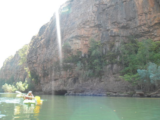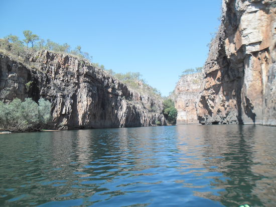 Nachdem wir Kakadu hinter uns gelassen haben, stoppten wir für zwei Tage nochmal in Katherine, da wir dort zum Einen noch den Gorge machen wollten (sind während unserer Arbeitszeit nie dazu gekommen) und zum Anderen dort Mary abholten. Wir buchten uns für einen Tag Kanus um durch den Gorge entlang zu paddeln. Es gibt auch dutzende Wanderwege um die Schlucht herum, doch ist der beste Weg die Schlucht zu sehen im Kanu. War ein schöner Tag, nur habe ich gemerkt dass das Kanufahren nicht zu meinem Hobby wird Einmal mussten wir das Kanu sogar paar Meter über Felsen schleppen um weiter paddeln zu können...Wir hielten hier und dort mal an einem Fleckchen Strand an um zu schwimmen und relaxen - das war dann eher mein Ding