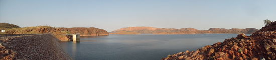 Nächster Stopp vor der Grenze war Lake Argyle, Australiens zweitgrößter Stausee. Dort sind wir entlang der Brücke gefahren, hatten eine Trinkpause und dann fuhren wir auch wieder zurück, da man nirgends am See baden kann aufgrund der Krokos.