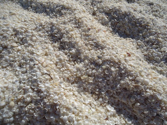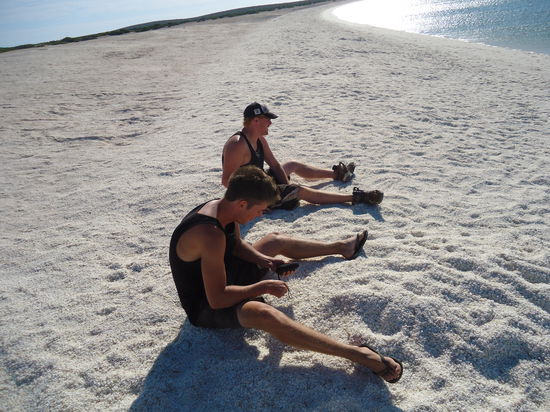 Am nächsten Tag machten wir Halt bei Shell Beach und wie der Name schon sagt, ist der Strand nur besetzt von Muscheln. Es war unglaublich, so weit das Auge reicht liegen winzig kleine weiße Muscheln und kein Körnchen Sand! Bis zu fünf Meter tief ist der Strand gefüllt mit Muscheln.