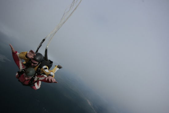 Als die Maschine startete wurde mir immer mulmiger aber ein zurück gab es nun nicht mehr. Es war ein wiklich komisches Gefühl in dieser kleinen vollgepackten Rappelkiste zu sitzen und zu sehen, wie hoch es ging. Irgendwann dachte ich: Oh, bestimmt sind wir gleich da, sieht schon so hoch aus. Aber da sagte mein Tandempartner auf einmal das wir die Hälfte geschafft haben. Oh mein Gott!