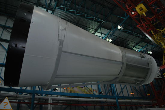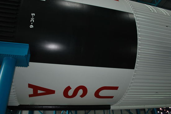 Das war ja nun schon extraklasse, aber eine Tür weiter öffnet sich eine riesige Halle und da liegt dann das Teil. Man kriegt es nur häppchenweise fotografiert, so gross ist diese Rakete. Es ist auch noch soviel mehr zu sehen in der Halle, man muss sich Zeit lassen, langsam um das Teil herumschleichen, es Stück für Stück betrachten und fotografieren und den Moment auskosten. Sowas kriegt man nicht jeden Tag zu sehen ! Ich bin zwar weiblich, aber wie man vielleicht merkt, durchaus technik-begeistert bei ansonsten völliger Ahnungslosigkeit. Oder vielleicht ist es auch nur mein spezielles Interesse an Geschichte, das mich hier so innerlich jubeln lässt, nach dem Motto, boah, ich habe die Saturn V gesehen !!! Ich enthalte sie euch auch nicht vor: