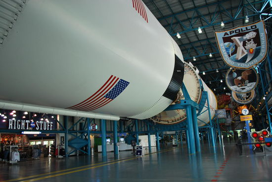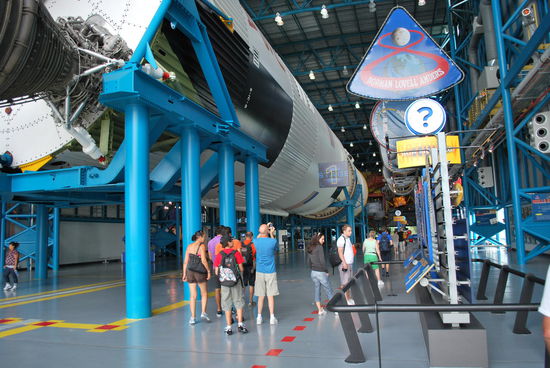 Mit die grössten Raketen, die je ins All geschossen wurden, waren die Saturn V-Raketen und eine der beiden noch existierenden kann man sich hier im Apollo/Saturn V-Center ansehen. Das ist der 2. Stopp auf der Bustour und was ist es doch cool ! Erst ein Film zur Geschichte der amerikanischen Raumfahrt im allgemeinen und dann kommt man in ein Kino, das wirklich ganz grosses Kino bietet: Die nachempfundene Mission einer Saturn V vom Start bis zur Landung auf dem Mond. Irgendwie lebt das alles, man kommt sich vor, als wäre man direkt dabei, würde irgendwo im Hintergrund des Kontrollzentrums stehen und alles live miterleben. Die "mission control" erwacht beleuchtet zu Leben, alles blinkt, zeigt irgendetwas an, überall läuft für alles Mögliche ein countdown. Bis zum wirklichen countdown...Das ist echt gänsehautträchtig ! In dem Moment, wo die Triebwerke gezündet sind, rüttelt und schüttelt sich der ganze Saal, es herrscht ohrenbetäubender Lärm und tja, man ist halt mittendrin. Wirklich grandios gemacht.