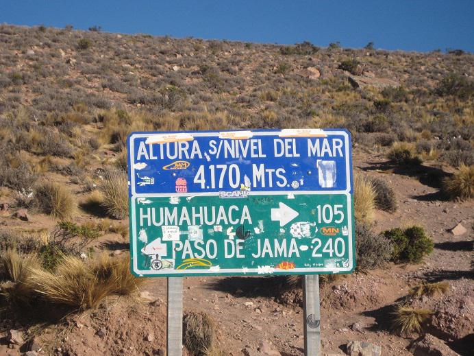 Am Samstag wollen wir gegen 8 Uhr frühstücken gehen, aber es ist noch alles zu. Also fahren wir in Richtung Salinas Grandes. Die Straße geht hoch bis zu einem Paß auf 4.170m.
