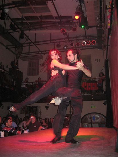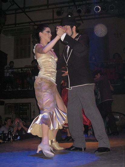 Um 18:45 Uhr werden wir im Hostel zur Tangoshow abgeholt. Aber nach 5 Minuten Fahrt bleibt der Bus erst einmal stehen. Eine Demo blockiert die Straße. Die Gäste von der anderen Seite der Demo müssen zu Fuß zum Bus laufen. Mit der ganzen Warterei haben wir dann eine Stunde Verspätung als wir bei "Tango Complejo" ankommen. Petra und Jacqi machen den Tango-Crashkurs, Clau und ich verzichten. Das Essen ist solala. Vorspeise, Hauptgang, Nachtisch und Wein sind im Preis inklusive. Die Show ist ganz ok, abwechselnd Tanz und Gesang. Allerdings haben wir von unserem Tisch aus nicht gerade die Beste Sicht. Am Ende spielt sich viel auf der Bühne direkt über uns ab und so sehen wir davon gar nichts. Alles in allem kann ich diese Tangoshow nicht wirklich weiterempfehlen.