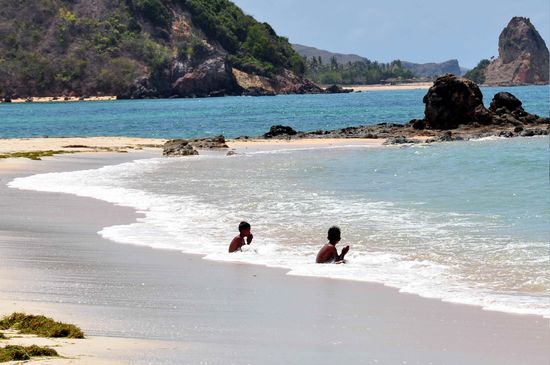 Der Weg nach Lombok war lang. Ich hab mir für 25 Euro nen Flug gebucht, weil ich sowieso nichtmehr so viel Zeit hatte und ich mir dann die ewig lange Reise nach Bali und dann weiter nach Lombok gespart hab, die 2 Tage gedauert hätte. Vom Mt Bromo bin ich also zuerst nach Probolinggo, von wo ich einen localbus nach Surabaya angehalten hab. Das mit dem Anhalten war wohl nix, die Busse halten nämlich grundsätzlich nicht an, sondern man muss in die offene Tür aufspringen, das spart wohl Zeit aber mit 2 Rucksäcken ists nicht ganz so leicht . Die Fahrt war lustig, alle ham mich angeglotzt, es sind dauernd Verkäufer in die offene Tür aufgesprungen und ham ihre Sachen verkauft und wirklich schnell waren wir auch nicht. Der Bus hat mit Umwegen doppelt so lange gebraucht, wie der exekutiv-bus. Als nach 2 Stunden auch noch der Motor hin war, hat der Busfahrer einfach den nächsten Bus in Richtung Surabaya angehalten und alle durften in dem schon vollen Bus "Platz nehmen". Ich durfte die nächsten 2 Stunden in der offenen Tür stehen, hatte ab und zu schon ganzschön Schiss, so wie der gefahren ist, aber immerhin gabs Fahrtwind, sodass ich nicht wieder so schlimm geschwitzt hab.