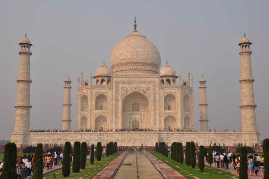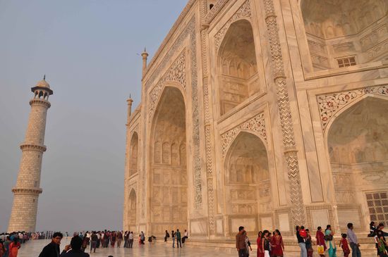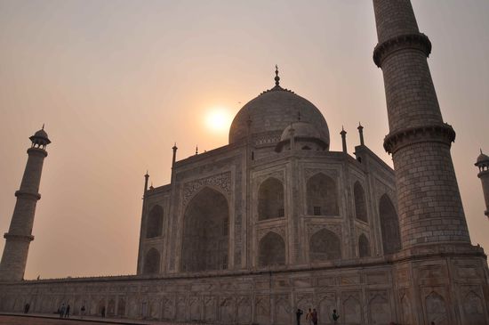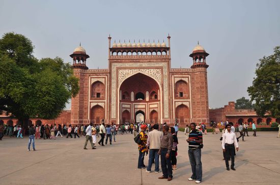 Natürlich bin ich dann zum Taj Mahal und hab mich schon im Vorraus über die 750 Rupee Eintritt geärgert, die man als Tourist hinblättert. Es war aber mein Glückstag, weils genau an dem Tag frei war wegen irgendsoner UNESCO Weltkulturwoche. Waren natürlich dann auch dementsprechend viele Leute. Der Taj war erwartungsgemäß der Hammer, was mich besonders beeindruckt hat, war dass es wirklich mitten in dem Gewusel von Agra steht, wie ne Oase von all dem Lärm und der Kuhsch#~*. Hab dann dort auch nen Schweizer getroffen, mit dem ich den Taj gemeinsam angeschaut hab (gut für Fotos wenn man zu zweit ist . Nachher sind wir noch nen Chai trinken gegangen, aus dem dann 4 geworden sind. Haben uns super unterhalten, er ist von der Türkei über den Iran nach Indien gekommen, genau die Route die ich in anderer Richtung machen möchte und seine geplante Route ging ähnlich wie meine durch Asien, China und Russland nach Hause.