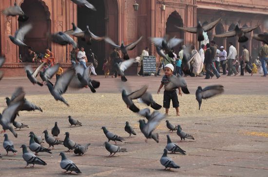 Wegen der späten Ankunft bin ich dann auch nur ein bisschen durch main bazaar spaziert, wo alle Hotels sind und ein wahnsinns Gewusel ist. An den restlichen Tagen war ich beim India Gate, eigentlich nicht besonders spektakulär, interessanter war der Park aussenrum, wo tausende von Indern Cricket spielen oder einfach nur Tabak kauen und rumspucken (absolute Lieblingsbeschäftigung!). Am letzten Tag nach Old Delhi, dummerweise ein Montag, an dem das Red Fort geschlossen hat. Bin dann in die grosse Moschee in Old Delhi, die super schön war und einfach so durch Old Delhi gelaufen. Schuhe hab ich mir auch gekauft (ich Mädchen ), aber brauchte einfach normale Sneaker, mit denen man in den USA auf die Strassen gehen kann . Gekostet ham se nur 400 Rupee (6 Euro) und sehen einigermassen tragbar und westlich aus