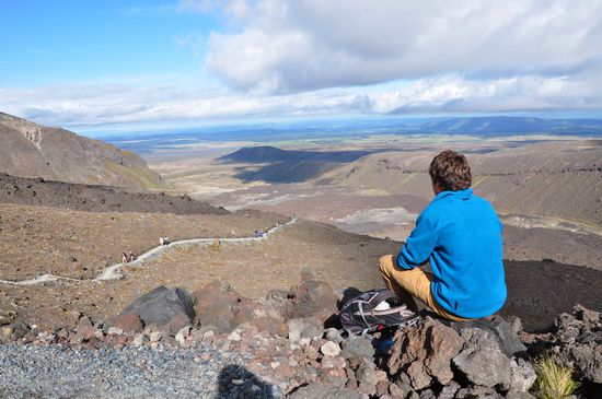 Nach ein paar Tagen "Reisepause" wollte ich noch ein paar Sachen machen, die ich vor 3 Jahren nicht gemacht hab. So zum Beispiel das Tongariro Crossing, war ziemlich spektakulär und ich hatte auch Glück mit dem Wetter, weil die Gruppe, dies am Tag darauf gemacht hat absolut nichts gesehen hat vor lauter Wolken.In der Früh um 7 werden alle Touristen am gleichen Ort abgesetzt und dann nach 6 oder 8 Stunden auf der anderen Seite wieder abgeholt, hat den Vorteil, dass man gleich Anschluss an Leute findet wenn man alleine ist. Ich bin mit nem Inder marschiert, der auf der AUT in Auckland studiert, lustiger Kerl und die Inder bringen ihr Inder-English anscheinend nie los, auch wenn sie seit Jahren in Neuseeland wohnen Haben dann auch noch den sidetrek zum Tongariro Peak gemacht, von woaus man nen super Blick haben sollte, leider war alles in Wolken und nur ganz kurz hat man mal runter gesehen.