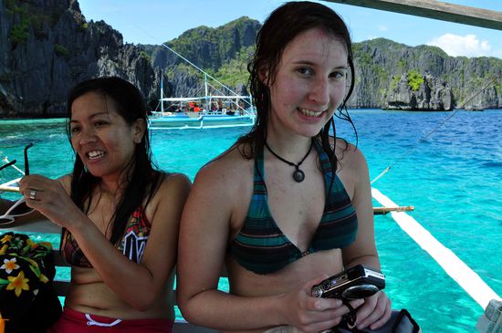 Meistens haben wir nur gefaulenzt am Strand, haben aber auch ne Inseltour gemacht, die wirklich der Wahnsinn war, schaut die Bilder an! Vor allem die Wasserfarbe war unglaublich beeindruckend. Am Boot waren wir mit 3 Philippinas aus Cebu, die waren auch ganz witzig.