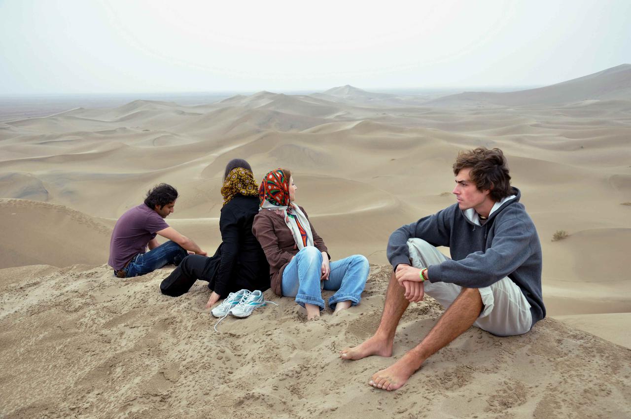 Am letzten Tag, bin ich mit den Iranern in die Wüste gefahren, Wetter war leider wieder schlecht. War trotzdem lustig, mit Kamelreiten und in den Dünen rumklettern. Mussten den Ausflug dann leider frühzeitig beenden, weil Reza noch Motorrad fahren wollte, gibt einige Fahrer, bei denen man sich hinten mit draufsetzen kann und die einen dann für ein bisschen Geld durch die Dünen fahren, allerdings fahren die wirklich wie die Sau, und Reza hats dann mit seinem Fahrer auch ziemlich hingehaut, wobei er sich die Nase gebrochen hat Also schnell die 100km zurück nach Yazd ab ins Krankenhaus zum röntgen, war auch wirklich gebrochen, allerdings war sie auch so geschwollen, dass man nichts machen konnte, er sollte ein paar Tage warten und daheim in Tehran nochmal zum Arzt.