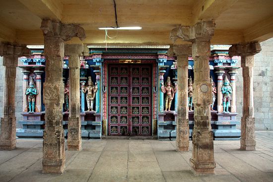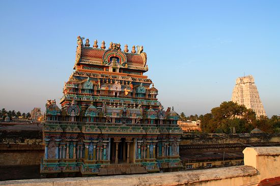 Die Fahrt dauerte mit einer kleinen Wartezeit an einem Bahnhof auf einen Gegenzug eine knappe Stunde. An unserer Unterhaltung beteiligte sich auch eine Inderin, die im Abteil saß und englisch spricht. In Trichy verabschiedeten wir uns und ich nahm mir eine Riksha zum Hotel Sangam, dem besten Hotel der Stadt. "Alles ausgebucht", aber der Manager stupste den Angestellten an der Rezeption und meinte, ich könne ein Zimmer haben - für 5.700 RS + Tax + Service. Nee, danke. Da haben sie im Handbuch wohl einen Preisstern vergessen. Also weiter zum Hotel Femina. Hier gibt es ebenfalls einen Swimming Pool. Leider ist auch hier über das Wochenende alles ausgebucht. Mein Rikshafahrer, den ich zum Glück immer habe warten lassen, fährt mich daraufhin 50 Meter die Straße rauf zum Kanjeena Plaza, wo ich für 1000 RS auch noch ein Zimmer bekomme.