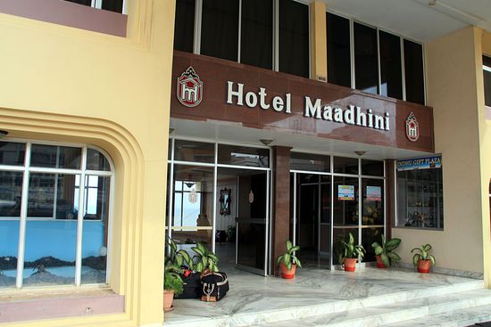 Mein Zimmer hat einen kleinen Balkon und Meerblick. Leider ist die Klimaanlage defekt und bläst mir genau gegen den Kopf. Was ich nicht verstehe ist, dass das Maadhini sein Freilufrestaurant nach "hinten" raus und unterhalb des Straßenniveaus gelegt hat und nicht vorne raus mit Blick aufs Meer. So kommt man sich vor wie in einem Kellerloch.