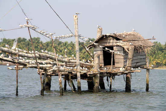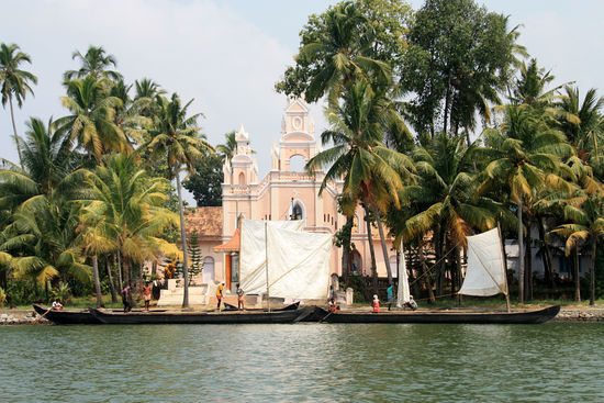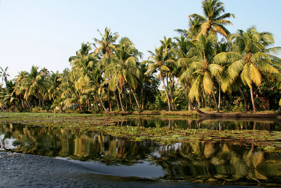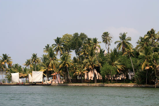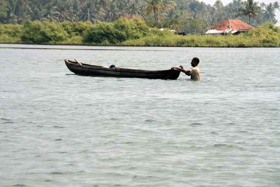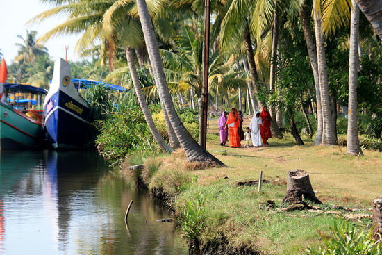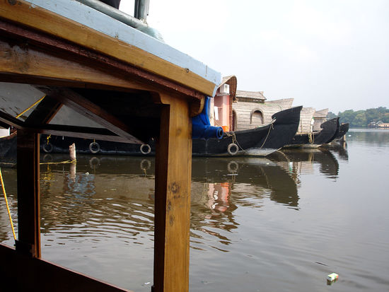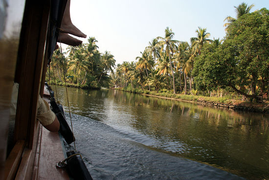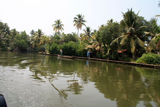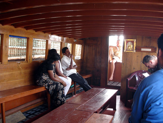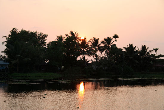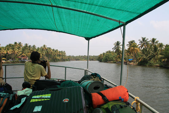 So tuckerten wir gemächlich durch die sehr schöne Landschaft der Backwaters. Zwischendrin hielten wir einmal um eine französische Familie mit Kleinkindern aufzunehmen, die zum Glück bei einem Ashram, so etwas wie einer Touristenattraktion, wieder ausstiegen. Außerdem hatten wir noch eine Lunchpause und eine Nachmittagsteepause. Um 19:00 fuhren wir dann in Aleppey ein, wobei es inzwischen stockdunkel war. Man hat also leider nichts gesehen.