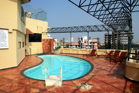 Das Woods Manor ist ein schönes Hotel, aber den winzigen Pool auf dem Dach ohne Schatten kann man getrost vergessen.