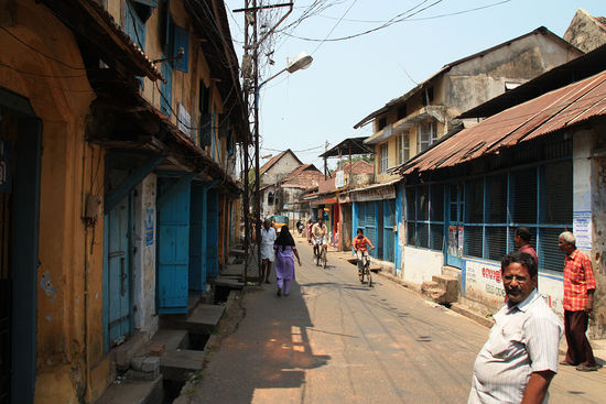 Heute ist Sightseeing angesagt. Ich fahre mit der Fähre nach Fort Cochin und bummle durch das alte Viertel. In den Bereichen, in denen der Tourismus eingezogen ist, sind die Häuser sehr schön renoviert.