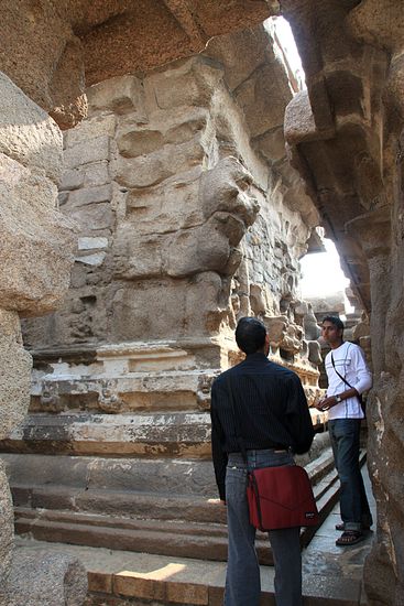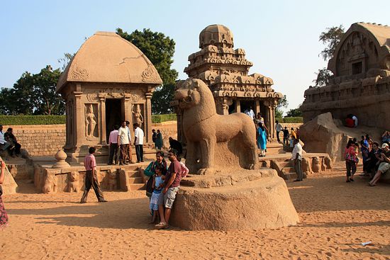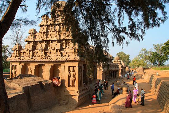 Gegen 15:30 war ich bereit, eine weitere Besichtigungsrunde in Angriff zu nehmen. Eigentlich wollte ich erst mit einer Riksha zur Tigerhöhle, dann zu den 5 Rathas und anschließend noch einmal zum Strandtempel. Natürlich war erst einmal keine Riksha zu finden. Als dann endlich einer hielt, wollte der 430 RS. Nachdem er nicht unter 300 Rs runter wollte, habe ich die Tigerhöhlen gestrichen und bin die 1,5 Kilometer zu den 5 Rathas gelaufen.