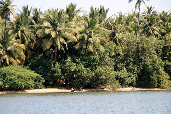 Anschließend ging es raus aus Pondicherry zum "Wasserpark". Eine Bootsfahrt war angesagt, ähnlich den Backwaters in Kerala. Eine halbe Stunde kostet 40 RS und das ganze kommt mir ziemlich lächerlich vor. So scheint es den anderen auch zu gehen. Es war immerhin noch besser, als 30 Minuten auf dem Parkplatz herumzustehen.
