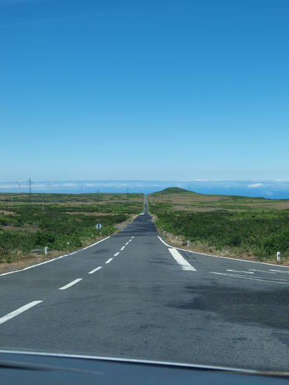 Wir fahren über den Encumeada-Pass zur Hochebene von Paúl da Serra. Zwei Täler hinter Funchal trübt es sich ein; als es ins Landesinnere geht, wird der Himmel wieder blau. Auf dem Hochplateau pfeift der Wind, und eifrig drehen sich die Windräder. Ansonsten ist da nicht viel. Der Blick geht in Richtung Meer, wo tief unten der Badeort Calheta liegt. Er scheint in weißen Wolkenfeldern zu schwimmen. Es ist wieder einer dieser faszinierenden Flugzeug-Ausblicke. Zum Ausgangspunkt der Wanderung geht es zwei Kilometer auf einer Serpentinenstraße abwärts, die nur vom Buszubringer befahren wird. Ich gönne mir diese Abfahrt, Urban läuft sie. Zurück machen wir es umgekehrt.