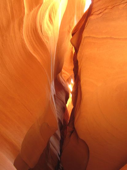 Als es dann los ging und die Namen verlesen wurden, sind wir dummerweise auf der Liste für 11 Uhr vergessen worden. Wir konnten aber trotzdem im dem Truck der Fototour mitfahren und am Canyon wieder an unsere Gruppe anschließen. Ich hatte etwas Respekt vorm Canyon, da ich durch Internetberichte die Sorge hatte, dass es eventuell zu eng sein könnte und ich mit meiner Platzangst Probleme bekomme. Doch die Sorge war unbegründet, es ging durch eine schmale, unscheinbare Felsspalte nach Innen und dann konnte man schon die vom Wasser ausgewaschenen Felswände bewundern. Die ersten Fotos sind noch nicht so gut geworden, bis der Tourguide meine Kameraeinstellungen geändert hat und durch längere Belichtung die Bilder heller wurden. Wir haben sogar zwei Beams gesehen, die entstehen, wenn das Sonnenlicht von oben bis auf den Grund des Bodens trifft.