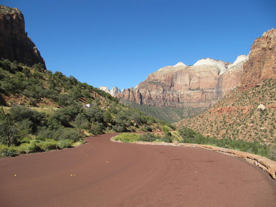 Heute Morgen ging es zurück in die Zivilisation Richtung Las Vegas. Auf dem Weg dorthin passierten wir den Zion Nationalpark. Dieser besteht auch aus einem Canyon und die Felswände links und rechts der Straße waren einfach der Wahnsinn. Nach einer Weile kamen wir auch einen langen Tunnel, der durch einen riesigen Felsen ging und zur Sicherheit nur einspurig befahren werden durfte. Schade, dass wir hier nicht mehr Zeit verbringen konnten, da es im Valley sehr schöne Wanderwege geben muss.
