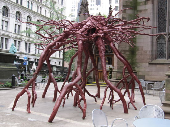 Über die Thompson Street gelangten wir in die Bleecker Street, eine lange, bunte Flaniermeile durch das Greenwich Village mit vielen Restaurants, Kneipen und Theatern. Auch die alten Häuser mit ihren Feuerleitern aus Gusseisen boten sich als gute Fotomotive an. Über die Mulberry Street liefen wir nach Little Italy. Das Italiener-Viertel ist im 19. Jahrhundert entstanden, wird allerdings immer kleiner, da sich das angrenzende Chinatown immer weiter ausbreitet. In Little Italy findet man aber immer noch viele italienische Restaurants und die Farben der Landesflagge sind fast überall zu finden. Ob man nun die Straßendekoration in grün-weiß-rot aufhängt oder den Wasserhydrant in den Landesfarben streicht, es wird auf jeden Fall keinem entgehen, wo er sich gerade befindet. Nach einem kurzen Abstecher auf der Canal Street/Chinatown begaben wir uns via Broadway weiter Richtung Financial District.