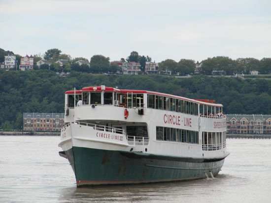 Da es erst mittags war, unsere Füße allerdings schon recht platt waren, beschlossen wir am Nachmittag die Stadt mit der Circle Line vom Wasser aus zu betrachten. Wir fuhren mit der U-Bahn zurück zum Hotel, machten uns kurz frisch und liefen dann zum Pier 83. Auf dem Weg dorthin bestaunten wir den Flugzeugträger USS Intrepid, der am Pier 86 lag und mittlerweile als Museum dient. Leider werden wir in New York nicht genug Zeit haben, diesen zu besichtigen, aber für den Flugzeugträger USS Midway in San Diego werden wir uns dann schon Zeit nehmen.