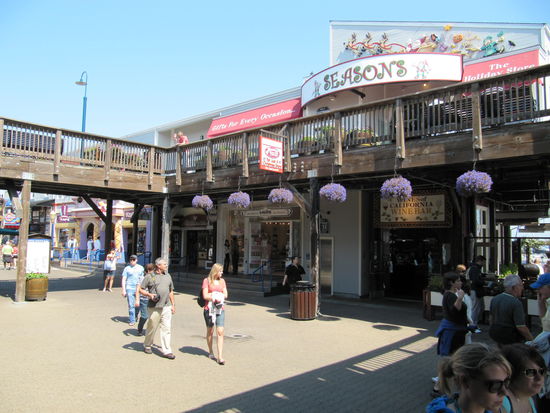 Zurück in der Stadt liefen wir zum Pier 39, der Fisherman's Wharf. Ich hatte mir die Wharf viel kitschiger vorgestellt. Klar war alles auf die Touristen ausgelegt, aber die Anlage gefiel mir sehr gut. Im "Krazy Kaps" bin ich dann an einem Hut nicht vorbeigekommen und musste ihn unbedingt kaufen. Allerdings stand so ein Kauf eh noch aus, da eine Kopfbedeckung bei unseren Wanderungen am Grand Canyon, Ausflüge um Las Vegas, Death Valley usw. nötig sein wird. Am Ende der Touri-Meile angekommen, stießen wir auf die Seelöwenkolonie, die sich dort auf Holzpontons angesiedelt haben und als beliebte Attraktion für Touristen gelten. Da wir noch den ganzen Tag vor uns hatten, gingen wir erst einmal im "Pier Market Seafood Restaurant" essen. Ich bestellte mir die "Fisherman's Platter" mit Shrimps und Calamari. Ich freute mich schon auf ein richtig gutes Seafood-Gericht, was dann allerdings auf frittierten Shrimps und frittierten Calamari bestand. Gut, ich bin in Amerika und die Calamari hatte ich auch frittiert erwarten, aber den Shrimps hätte man das echt ersparen können. Lecker war es aber trotzdem.