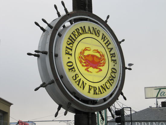 Da unser Busfahrer nicht in den Feierabendverkehr kommen wollte, fuhren wir um vier Uhr bereits wieder Richtung San Francisco zurück. Und wie sollte es auch anderes sein, sobald wir uns der Brücke näherten, war auch wieder der berühmte Nebel zurück. Wir stiegen bei unserem Hotel aus und machten uns nochmal auf dem Weg zu Fisherman's Wharf. Hier bummelten wir etwas durch die Läden, kauften ein paar Postkarten für die Lieben zu Hause und da ich auch noch eine Erinnerung an San Francisco für mein Bücherregal daheim brauchte, hab ich nun einen neuen Freund. Darf ich vorstellen - Sebastian, die Krabbe. Ist er nicht niedlich? Ich konnte ihm einfach nicht widerstehen