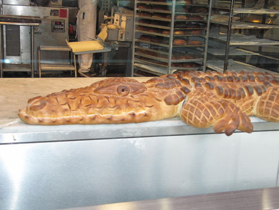 Auf dem Weg zurück zum Hotel, fanden wir dann auch durch Zufall das bekannte Fotomotiv der Fisherman's Wharf. Das Schild hatte ich vorher im Internet so oft gesehen, somit brauchte ich hiervon auch unbedingt ein Foto. Mein Freund machte mich dann noch auf eine Bäckerei aufmerksam, bei der man von außen in die Backstube gucken konnte, um die Bäcker, bei ihrer Arbeit zu beobachten. Im Schaufenster waren auch einige kuriose Werke ausgestellt. (siehe Foto)