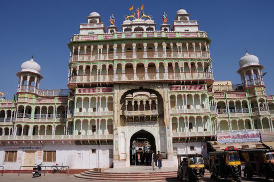 Kurz vor Mandawa machten wir einen Halt am "Sahti-Tempel" in "Jhunjhunun", einem imposantes Gemäuer, in dem sich Zimmer für bis zu 300 Pilger befinden. Um 15 Uhr hatten wir endlich Mandawa erreicht, das bekannt durch seine vielen "Havelis" ist. Havelis sind alte mit vielen bunten Wandmalereien versehenen Herrscherhäuser aus dem 18./19. Jahrhundert, die zusehens verfallen. Einige davon sind und werden jedoch restauriert und teilweise in Hotels umgewandelt.