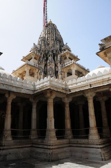 In Ranakpur angekommen, gibt es einen wunderschönen Jain-Tempel aus dem 15. Jh. Der Tempel ist aus Marmor und zählt zu den Höhepunkten indischer Steinmetzarbeiten und Architektur. Die Anlage ruht auf insgesamt 1.444 Säulen. Man darf weder Essen noch Trinken mit hineinnehmen, auch nichts aus Leder, selbst Rucksäcke oder Taschen werden kontrolliert.