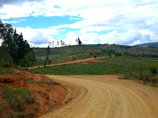 Mittags liefen wir zum Mirador. Der Aufstieg war nur ca. 15 Minuten. Von oben hatte man einen Überblick auf ganz Chachapoyas und die umliegenden Hügel. Es hiess, dass man einen weiteren Aussichtspunkt besteigen könne um in ein benachbartes Tal sehen zu können. Ohne zu Fragen wo es durch geht, machten wir uns auf den Weg. Schlussendlich liefen wir auf den umliegenden Hügeln um Chachapoyas herum. Wahrscheinlich haben wir wohl einen falschen Weg genommen; die Wanderung über Stock und Stein hatte aber Spass gemacht. Abends liefen wir zurück und entkamen nur knapp dem beginnenden Unwetter. Es regnete wie aus Eimern. Da wir jedoch noch einen Supermarkt besuchen und Abendessen gehen wollten, marschierten wir wieder ins Nass hinaus. Auf den Strassen liefen richtige Bäche den Hügel hinab. Wir rannten durch die Gegend und hielten schlussendlich bei einem Shop. Wir wollen morgen selbständig eine Tour zum Wasserfall in Gocta machen und kauften daher noch unser morgiges Frühstück ein. Danach suchten wir ein bequemes Restaurant. In einem einfachen peruanischen Laden, erhielt ich für 3.50 Sol eine Hirsensuppe, Reis, Bohnen, einem Gemüsetortilla und einen warmen gesüssten Tee. Es schmeckte alles sehr gut. Im Hostel machten wir es uns gemütlich und warm. Wir lasen, schrieben Tagebuch und relaxten bis wir um ca. 21.30 Uhr die Augen schlossen.