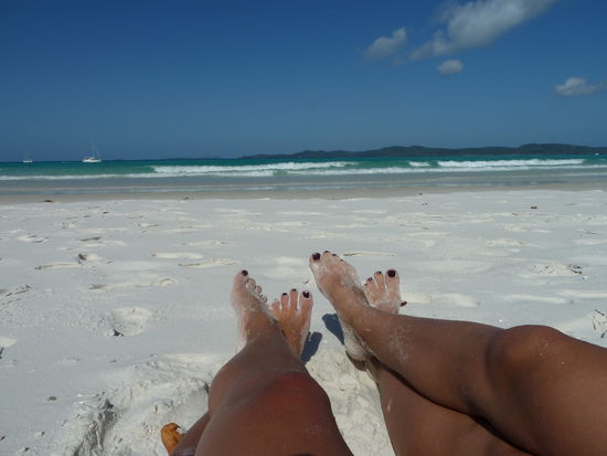 Am Sonntag sind wir fuer 2 Tage und 2 Naechte mit einem Segelschiff zu den Whitsundays aufgebrochen. Mit uns an Bord waren noch 18 andere Leute aus aller Welt... Also eine kleine, aber feine Truppe.