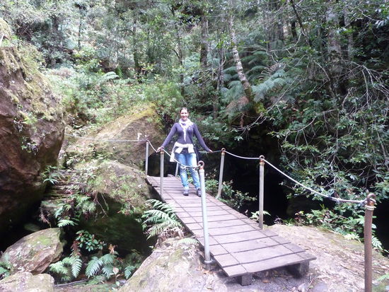 Ausserdem haben wir den "Grand Canyon Walk" gewagt. Das war teilweise sehr unheimlich.... Sind naemlich gleich morgens im Nebel losgestartet dann ging es erstmal gefuhelte 1000 Stufen in den Canyon hinab. Aber es war ein unglaubliches Erlebnis und traumhaft schoen! Nach ca. 3 Stunden von Fels zu Fels springen, ueber einen Fluss balancieren und am Abgrund entlang wandern... Waren wir doch froh das wir wieder heil oben angekommen sind.