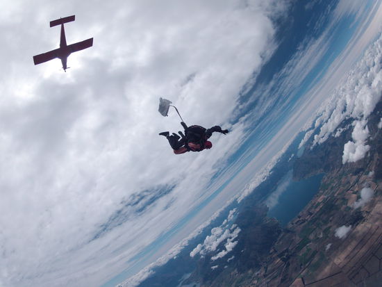 Wir sind bei 15.000 Fuss aus einem Flugzeig gesprungen! Irgendwie koennen wir es ja selbst noch nicht glauben, aber es war echt genial! Einfach der Hammer.