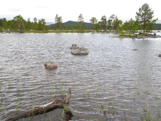 Das Sømaadelta ist geprägt von weitläufigen Feucht- und Sumpfgebieten an denen sich in der Ferne die Bergtundra anschließt. Der Isterensee ist nur geringfügig niedriger gelegen als der Femund und auch hier ist die Baumgrenze nicht fern.