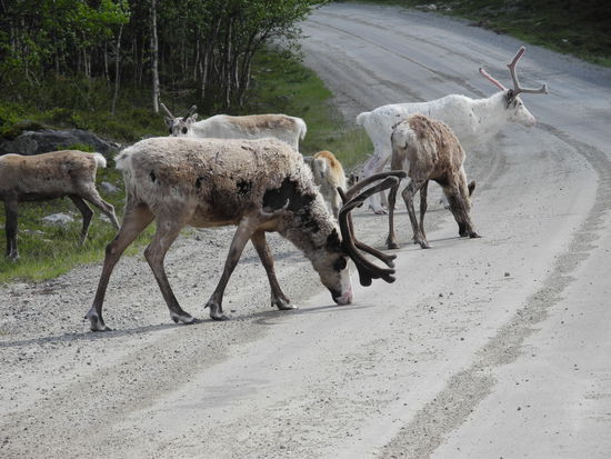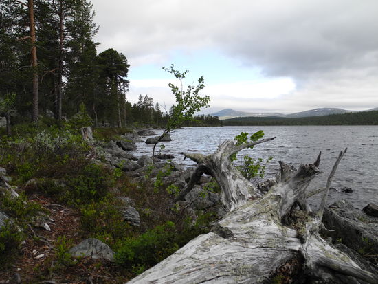 Und Sie erzählte von Elchen, die im Frühjahr, sobald die Bergtundra schneefrei ist, dorthin abwandern, da dass Nahrungsangebot dort dann besser ist, als hier unten am See. Im Winter aber, wenn die Bergkuppen wieder von Schnee bedeckt sind, würden die Elche zu Hunderten am Femund auftauchen und die Nadeln und die Rinde der hier in großer Zahl vorkommenden Kiefern fressen.