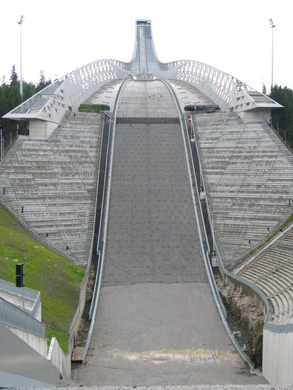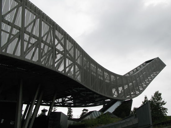Oslo - Holmenkollen; die weisse, von weitem sichtbare Holmenkollen-Wintersportanlage wurde 2010 neu eröffnet. Die Krönung der WM-Arena ist die mäjestätische Sprungschanze in modernem architektonischen Design.