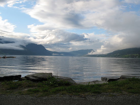 Sandane - letzlich finden wir direkt am Gloppe Fjord, einem Nebenarm des Nordfjords einen schönen Platz zum Übernachten...