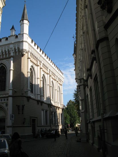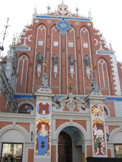 Riga - ...die Bezeichnung geht auf die Bruderschaft der Schwarzhäupter zurück, eine mittelalterliche Vereinigung unverheirateter, wohlhabender deutschstämmiger Kaufleute im alten Riga. Nach der Heirat verliessen die Mitglieder die Gemeinschaft und traten den mächtigen Gilden bei.