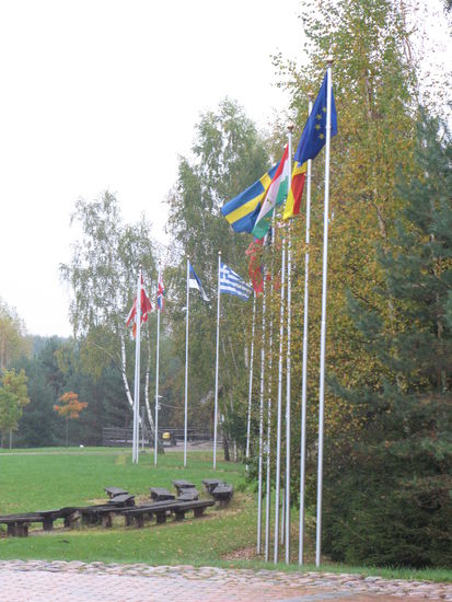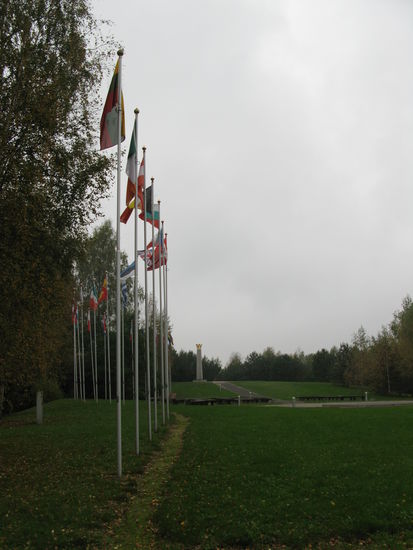 Seit dem Tag des EU-Beitritts, dem 1. Mai 2004, stehen hier die Flaggen der EU-Länder und eine Granitsäule.