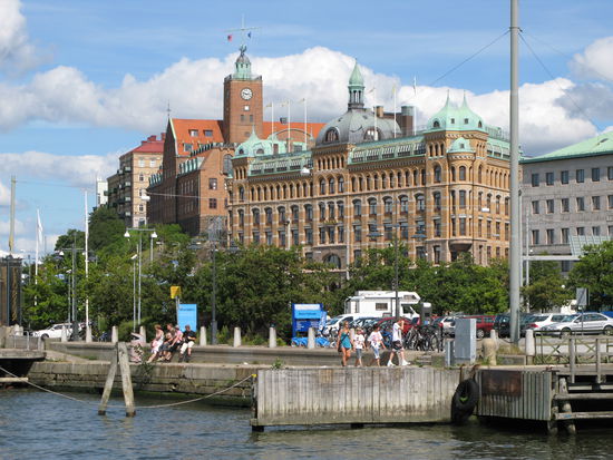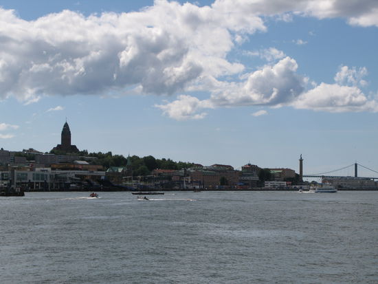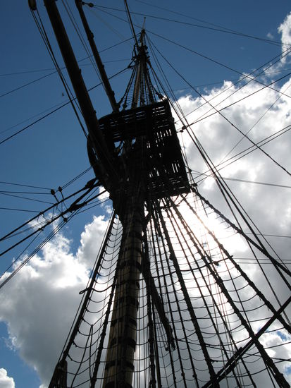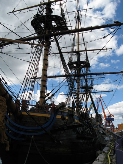 Göteborg - im Hafen Stenpiren liegt das majestätische Segelschiff Götheborg. Sie fuhr einstmals übers Meer nach Ost-Indien... Passagiere: mutige Auswanderer... zurück brachte sie Seide und Gewürze...