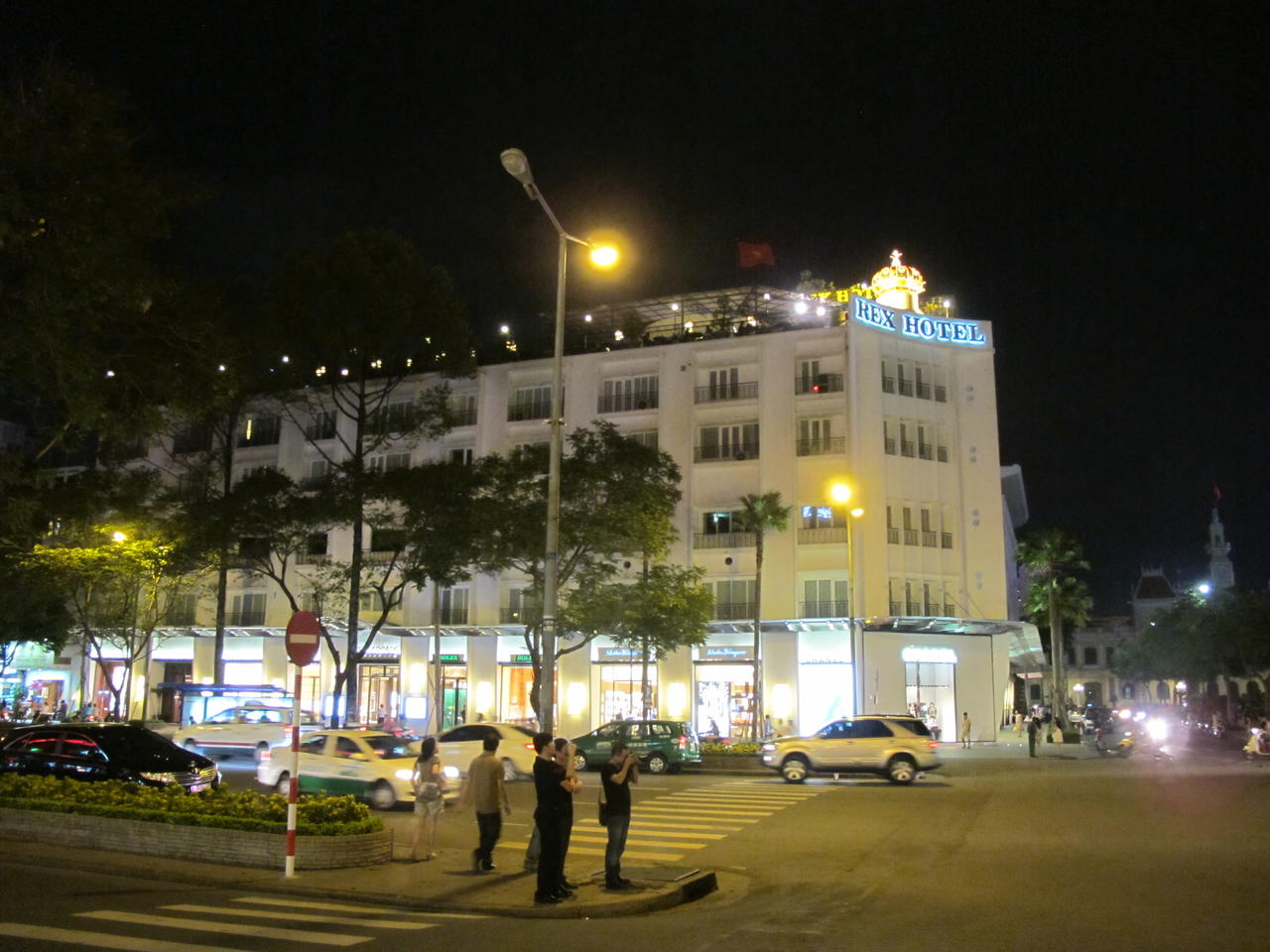 War aber ziemlich schnell wieder raus aus dem Markt, is net wirklich was Besonderes hab ich scho in vielen Städten so gesehen, außerdem wars da drinnen noch wärmer. Man kann ihn also auslassen, außer man hat Bock auf ein paar billige Klamotten. Weiter gings dann zum Hotel de Ville, der Sitz des Volkskongresses. Als ich vor ihm stand, ist mir daneben gleich das Rex Hotel aufgefallen, welches ich unbedingt sehen wollte und auf dessen Rooftopbar ich abends unbedingt wollte, habs dann später auch umgesetzt. Dort waren im Vietnamkrieg die Offiziere der Amis untergebracht und auf der Dachbar sollen ganz gute Partys abgegangen sein .