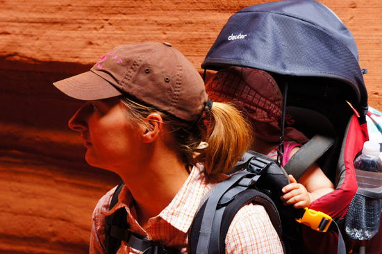 Wie immer sah es auch hier etwas einfach aus bei den von Indiandern verwalteten Canyons und kostete 26 $ pro Person für eine Stunde (also wieder teurer geworden). Dann stand einer von den dicken Guides auf und wir dachten schon, na toll das hat uns noch gefehlt. Doch wir wurden schnell umgestimmt, denn der Typ war echt locker und ein super Entertainer. Der Eingang war recht eng und wir hatten schon die Befürchtung da mit unseren Kraxen gar nicht durchzupassen. Alles ging glatt und dann standen wir unten in einer bizarren Welt aus geschwungenen glattgeputzten Felsen. Unser Guide zeigte uns immer die besten Plätze um Bilder zu machen und es enstanden ca. 200 Fotos. Die Tour dauerte dann doch fast 2 h und wir waren sehr positiv überrascht. Die Führung war das Geld wert und wir waren sehr zufrieden mit unserer Entscheidung es zu machen. Weiter ging es Richtung Grand Staircase Escalante und dieses National Monument wollten wir auf der Cottonwoodroad durchqueren (eine Dirtroad die unbefahrbar bei Regen ist). Am Anfang war ich noch etwas verhalten, denn an manchen Stellen kommt schon etwas Achterbahngefühl auf. Nach ein paar steilen Passagen hab ich aber schnell Gefallen gefunden und die bezaubernde Berg- und Felslandschaft tat ihr übriges. Wir sparten durch die Befahrung ca. 100 mi die es sonst um den Park herumgegangen wäre. Nach ca. ¾ der Strecke kamen Gewitterwolken auf und wir ahnten nichts gutes. Trotzdem machten wir noch schnell einen Abstecher zum Grosvenor Arch und ganz schnell in Richtung Zeltplatz weiter. Ca. 6 mi vor dem Abzweig auf die befestigte Straße ging der Wolkenbruch nieder, wir versuchten es aber noch ein Stückchen, bis Kai sagte das das Auto nicht mehr reagiert.... Ohje und wir fuhren bergab!! Glücklicherweise kamen wir noch rechtzeitig zum stehen und konnten sogar ein Stück rückwärts fahren um vom Gefälle weg zu sein. Kai versuchte es dann zu Fuß und schaute nach wie der Untergrund ist. Naja Glatteis und bergab, so kann man sich diesen Schmierfilm aus Regen, Staub und Sand vorstellen, Kai schlitterte mühevoll hin und her. Nachdem aus aufhörte zu regnen, warteten wir ab, bis wir das Gefühl hatten es wäre schon etwas abgetrocknet und probierten es. Leider kamen wir nicht weit und rutschten Richtung Böschung. Kai entschied sich dazu, dass ich fahre und er das Auto zur Seite schiebt, damit wir nicht einen Abhang runter rutschten. Nach etlichen Minuten war es dann vollbracht wir hatten das schlimmste Stück überstanden. Es ging dann noch mit etlichem schlingern, rutschen und Schlammschlacht weiter bis wir die befestigte Straße erreichten. Das Auto sah aus wie durch die Pampe gezogen, Kai hatte das Grinsen eines Ralley Dacar Fahrers auf dem Gesicht und ich konnte mir auch das Lachen nicht verkneifen. Der Zeltplatz im Kodachromebasin war wunderschön gelegen und besaß für 10 $ sogar ganz tolle Duschen. Nachdem wir eine kurze Zeit da waren, trafen wir Hannes und Lara wieder, wir freuten uns sehr, da wir schon vermuteten, dass sie hier sein könnten. Abends saßen wir wieder schön beisammen und erzählten uns die Abenteuer die wir erlebt hatten. Hannes war ganz neidisch auf unser Dirtroaderlebnis, da er das auch gern mal machen will (auf dem Rückweg vom Bryce Canyon sollte es soweit sein). Bei den Fotos wird euch dann sicherlich noch etwas auffallen, Hannes meinte dazu, dass es untypisch für die Amerikaner wäre den Park nicht erst ab 18 freizugeben oder den Phallus wenigstens zu verhüllen ;o).