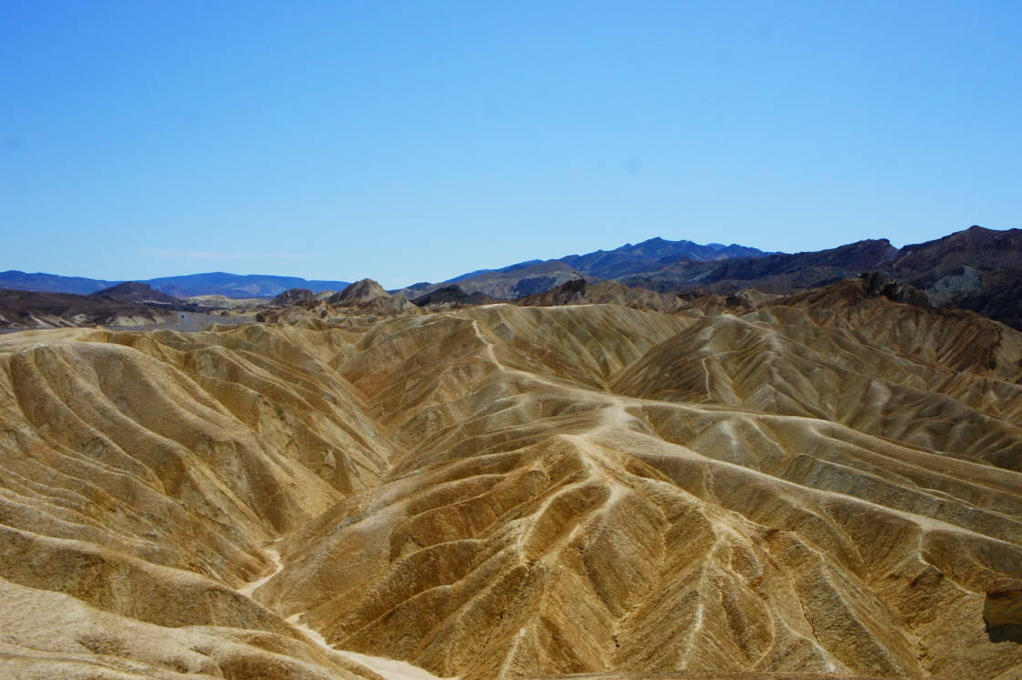 Nachtrag zur letzten Nacht... Kai war wieder erst spät im Bett (nach 2 Uhr morgens) und hatte Plus Minus Null gemacht, also blieb es beim Gewinn von 100 $ vom Vortag. Nach einer sehr kurzen Nacht bin ich pünktlich um 7 wach geworden und wir schafften es, nach einem mittelprächtigen aber teurem Frühstück, zeitig wegzukommen. Heute stand ein langer Fahrtag an, denn wir mussten durchs gesamte Death Valley durch und wollten bis nach Lone Pine (Alabama Hills). Das Death Valley begrüßte uns mit moderaten Temperaturen von 100 Fahrenheit (ca. 38 °C im Schatten, Schatten?).