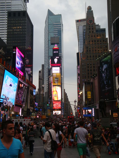 Mittlerweile war dann auch schon 19.00 Uhr und der Hunger war groß. Um 19.10 Uhr standen wir dann mitten auf dem Time Square. Der Anblick der riesigen Werbeanzeigen und der Menschenmassen ließen unseren Hunger kurz vergessen. Das hielt aber nich lange an. Es dauerte genau so lange bis wir das Hard Rock Cafe entdeckten. Leider war einafch zu viel los und wir hätten übertrieben gesagt bis morgen früh warten müssen bis wir einen Platz bekommen hätten.